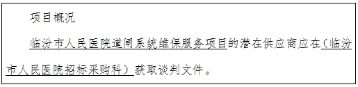 项目名称:临汾市人民医院道闸系统维保服务项目