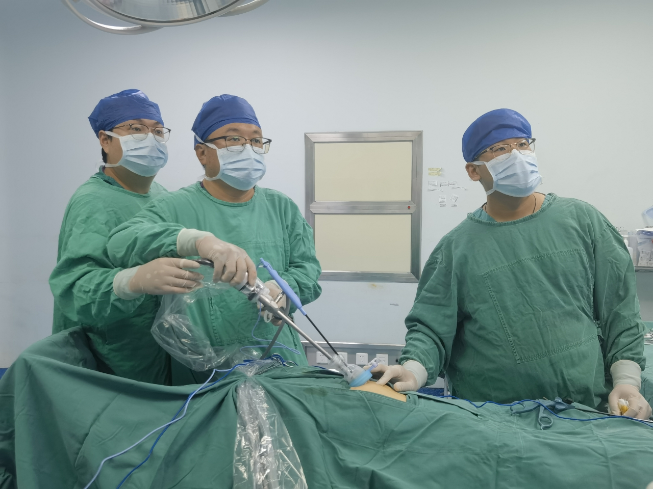 近日,在蒙岭主任指导下,我院胃肠外科张强副主任医师、左凯主治医师、傅志雄医师团队共同配合,顺利完成一例经脐单孔腹腔镜完全腹膜外腹股沟疝无张力修补术(TEP)。这是胃肠外科团队在我市范围内率先开展的被行业内誉为“医学美容级”的单孔无瘢痕腹股沟疝修补术,是针对此类疾病最前沿的治疗手段之一。此项技术的成功开展,标志着我院在微创疝修补领域技术水平再上新台阶。