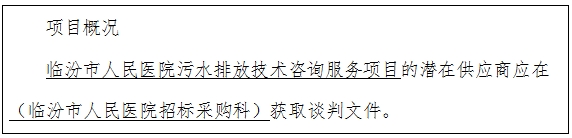 采购需求:为临汾市人民医院重新申领排污许可证提供专业技术服务,通过技术审查、专家论证,完成排污许可证申领工作,详见谈判文件。