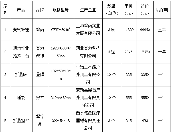 临汾市人民医院于2025年10月11日对购置医学救援基础设施设备项目组织了询价采购,评审委员会依照询价文件确定的标准、办法,进行了客观公正的评定,现将最终的评定结果公告如下: