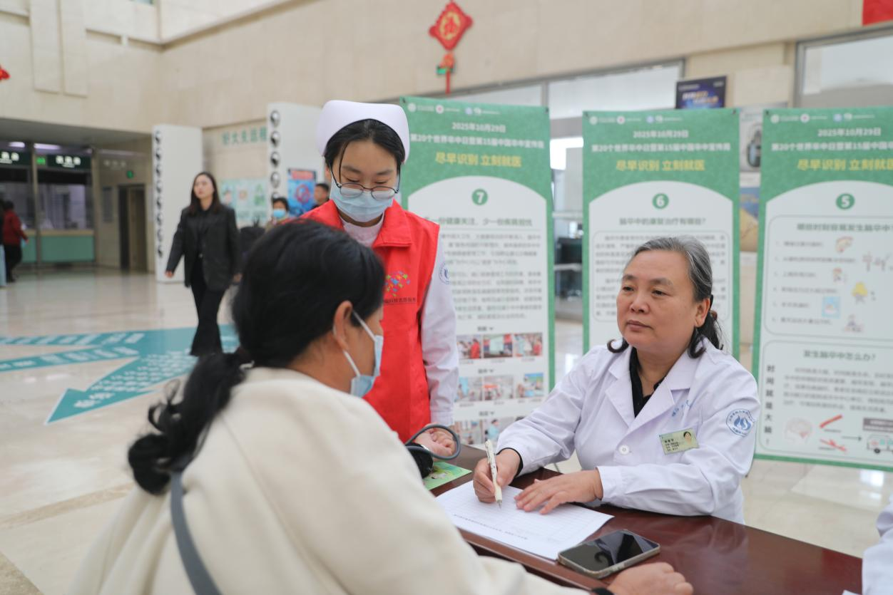 2025年10月29日是第20个“世界卒中日”,为响应“尽早识别,立刻就医”的年度主题,我院卒中中心联合公共卫生科在医院门诊大厅举办专场义诊活动,向市民普及脑卒中防治知识,强化早期救治意识。
