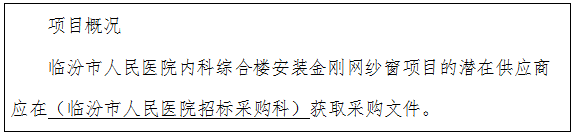 项目名称:临汾市人民医院内科综合楼安装金刚网纱窗项目