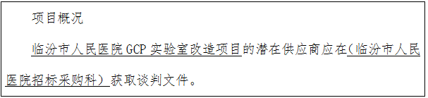 采购需求:临汾市人民医院GCP改造,包括电气改造和淋浴间改造两部分。详见谈判文件。