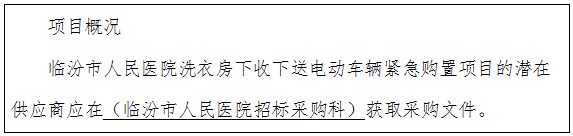 项目名称:临汾市人民医院洗衣房下收下送电动车辆紧急购置项目