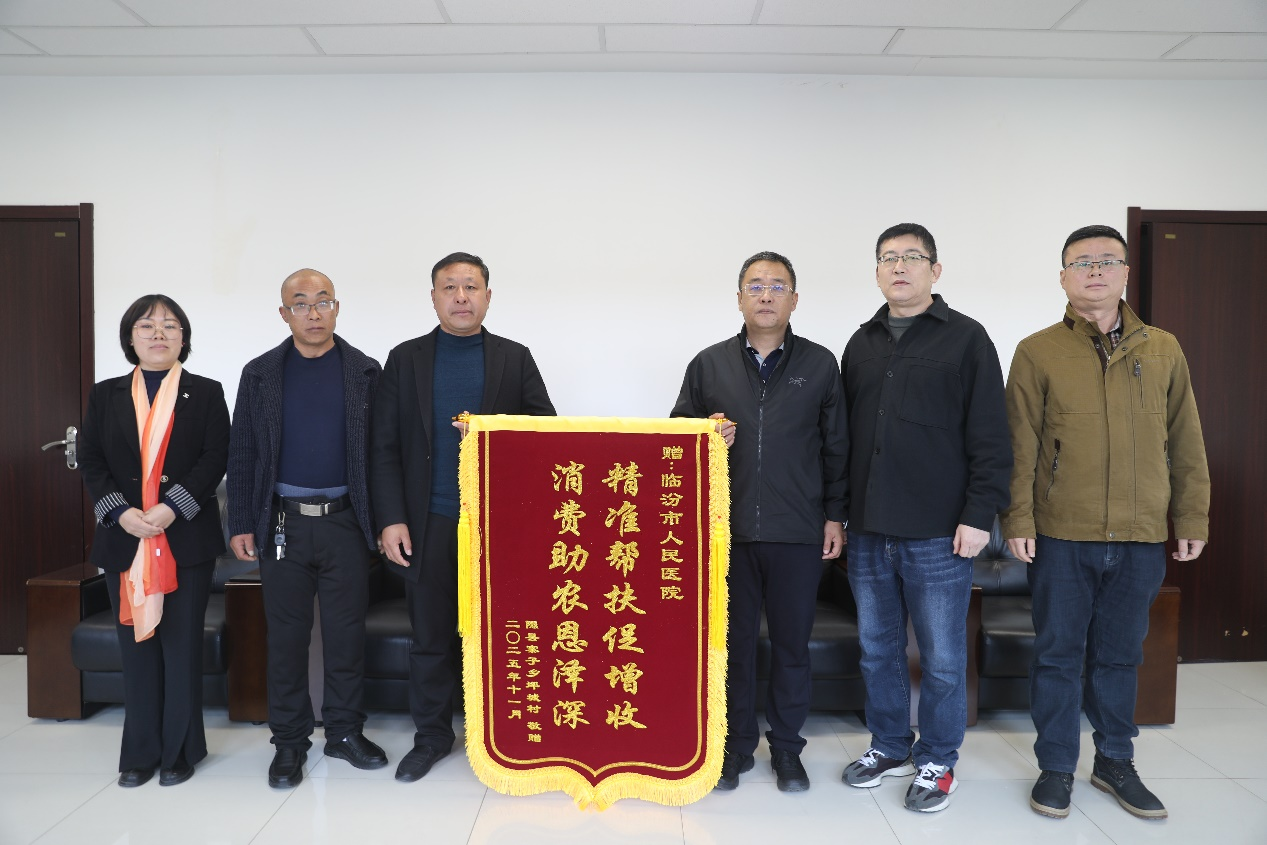 11月4日上午,来自隰县寨子乡坪城村的村党支部书记、主任马保平,村副主任刘小东带着坪城村全体村民的嘱托,将写有“精准帮扶促增收 消费助农恩泽深”的锦旗送到医院,对我院多年来对坪城村的帮扶和表示诚挚的感谢。
