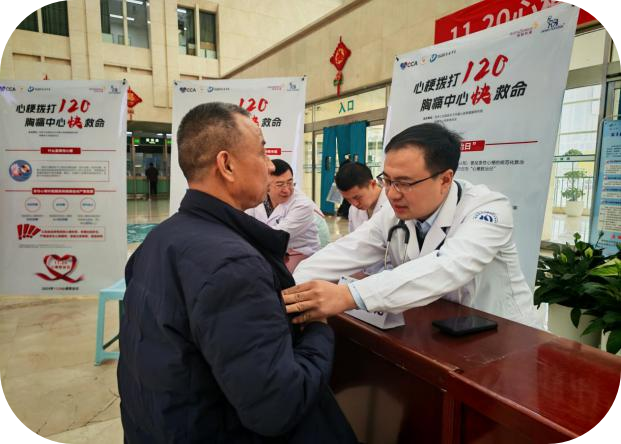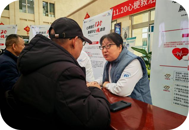 2025年11月20日是“心梗救治日”,为提升市民心梗急救意识与自救互救能力,我院心血管内科联合公共卫生科,以“心梗拨打120,胸痛中心快救命”为主题,举办义诊活动,用专业服务为群众心健康保驾护航。