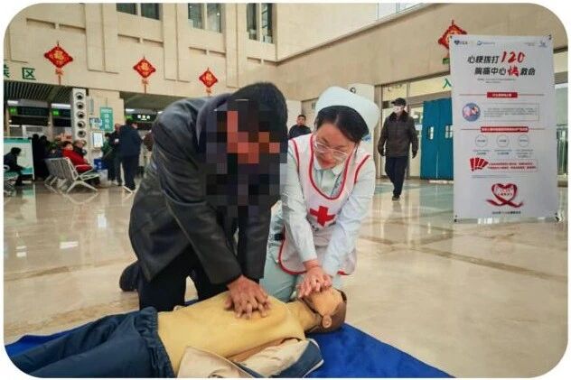 护理团队同步开展免费血压检测服务,对血压异常者提供个性化健康指导,结合饮食、运动、用药等方面给出科学调理建议。活动特设心肺复苏实操体验区,借助专业心肺复苏模具,现场演示胸外按压的力度、频率、按压点及人工呼吸的标准流程,手把手指导市民实操练习,耐心纠正动作偏差,确保每位参与者都能掌握规范急救方法,真正实现“关键时刻能用上”。