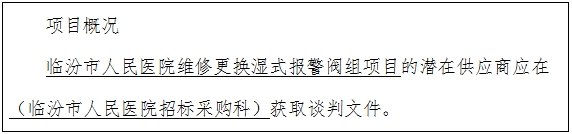 项目名称:临汾市人民医院维修更换湿式报警阀组项目