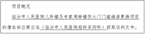 项目名称:临汾市人民医院儿科楼及专家周转楼防火门门磁维修更换项目