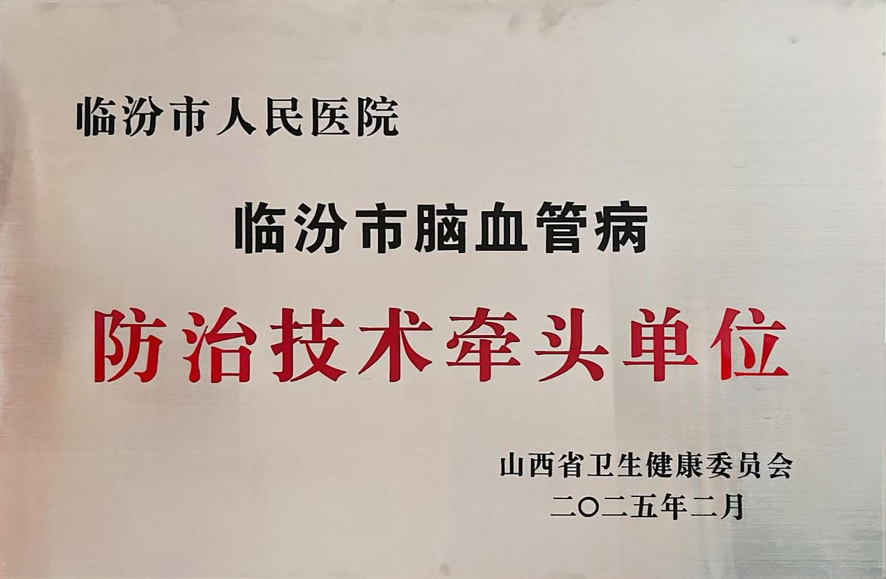 为贯彻落实《健康中国行动——心脑血管疾病防治行动实施方案(2023-2030年)》,推进脑血管病防治各项工作,指导医疗卫生人员科学规范开展脑血管病防治相关工作,切实提高规范化、同质化防治能力和水平,提升我省基层筛查能力及规范化管理水平,加强不同地区、不同层级医疗机构之间的沟通协作,形成更加完善的脑血管病防治体系,山西医科大学第一医院(山西省脑血管病防治技术牵头单位)组织召开山西省脑血管病防治会议,评定我院为“临汾市脑血管病防治技术牵头单位”。这一殊荣不仅是对我院脑血管病诊疗技术与防治能力的充分肯定,更是对我院长期以来在区域医疗防治工作中所做贡献的高度认可。