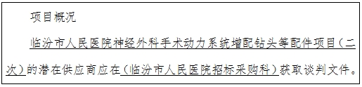 项目名称:临汾市人民医院神经外科手术动力系统增配钻头等配件项目(二次)