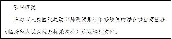 项目名称:临汾市人民医院运动心肺测试系统维修项目
