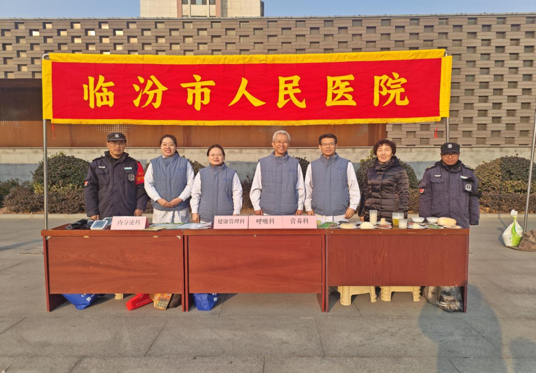 12月10日,临汾市卫生健康委员会组织直属各单位,在市区平阳广场开展“健康十小事”宣传义诊活动,以专业服务传递健康理念,再度掀起全市健康关注热潮。我院积极响应号召,组建由公共卫生科牵头,健康管理科、营养科、呼吸科、内分泌科专家组成的义诊团队,精准对接群众健康需求。
