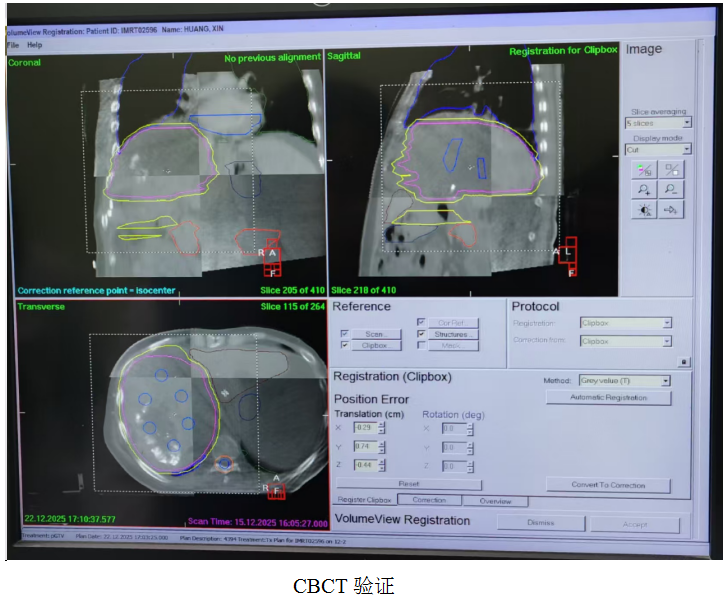 方案确定后,肿瘤放射治疗中心团队对放疗计划反复调整、验证,确保每一道射线都精准命中靶点。依据这一高难度方案,王先生于2025年12月22日、23日、25日完成3次治疗,每次用时25分钟。治疗中,提前规划的“晶格”精准落地,辐射剂量在肿瘤内部形成“峰谷交替”的分布模式,既实现了对肿瘤细胞的强效杀伤,又让邻近正常器官的剂量迅速“悬崖式跌落”,成功破解了“既治瘤,又保肝”的难题。
