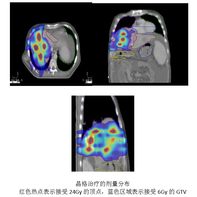 面对这一艰巨挑战,肿瘤放射治疗中心积极探索新疗法,全面梳理患者病史、病理诊断、影像学报告及身体状况,一致认为晚期肝癌伴随巨大肿块时,传统治疗往往面临两难选择,加大剂量可能损伤健康肝组织,降低剂量又难以遏制肿瘤进展。而晶格放疗是一种前沿的空间分割放疗技术,对于这种肿瘤体积超过5厘米的患者,能够克服常规放疗的剂量瓶颈。