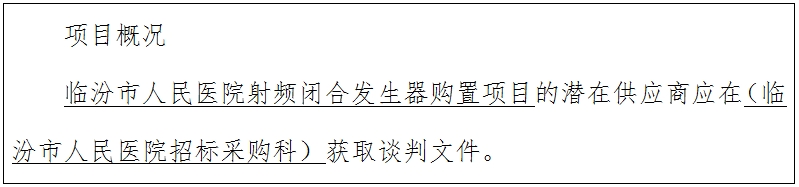 项目名称:临汾市人民医院射频闭合发生器购置项目