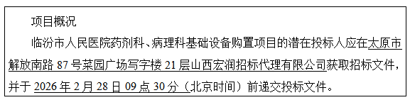2.项目名称:临汾市人民医院药剂科、病理科基础设备购置项目