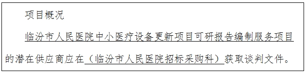 项目名称:临汾市人民医院中小医疗设备更新项目可研报告编制服务项目