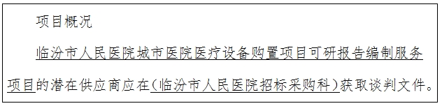 项目名称:临汾市人民医院城市医院医疗设备购置项目可研报告编制服务项目