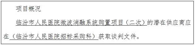 项目名称:临汾市人民医院微波消融系统购置项目(二次)