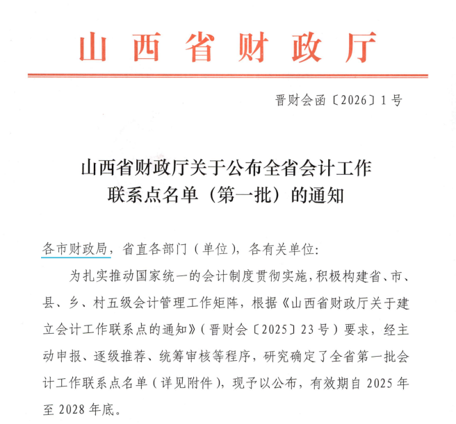 为深入贯彻党中央、国务院关于加强财会监督、推进会计改革的决策部署,全面落实国家统一会计制度,山西省财政厅立足全省经济社会发展和财会管理实际,创新建立会计工作联系点制度,着力构建上下贯通、协同高效、运行有力的会计管理工作体系,为推动全省高质量发展夯实坚实会计基础。