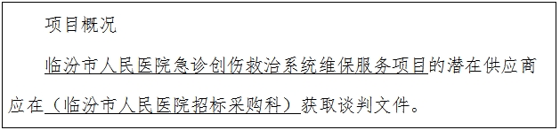 项目名称:临汾市人民医院急诊创伤救治系统维保服务项目