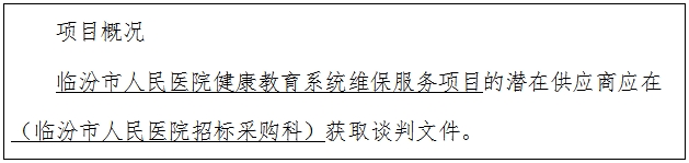 项目名称:临汾市人民医院健康教育系统维保服务项目