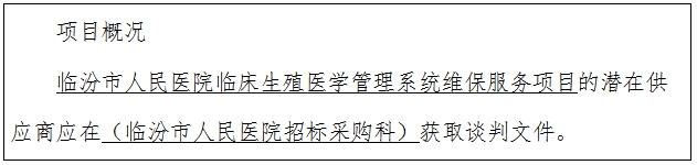 项目名称:临汾市人民医院临床生殖医学管理系统维保服务项目