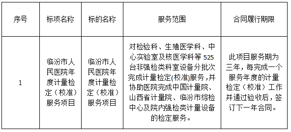 二、项目名称:临汾市人民医院年度计量检定(校准)服务项目