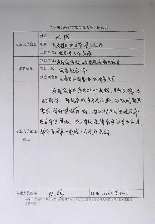 单一来源采购方式专业人员论证意见