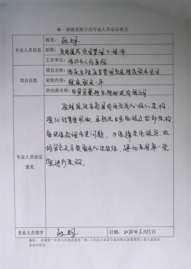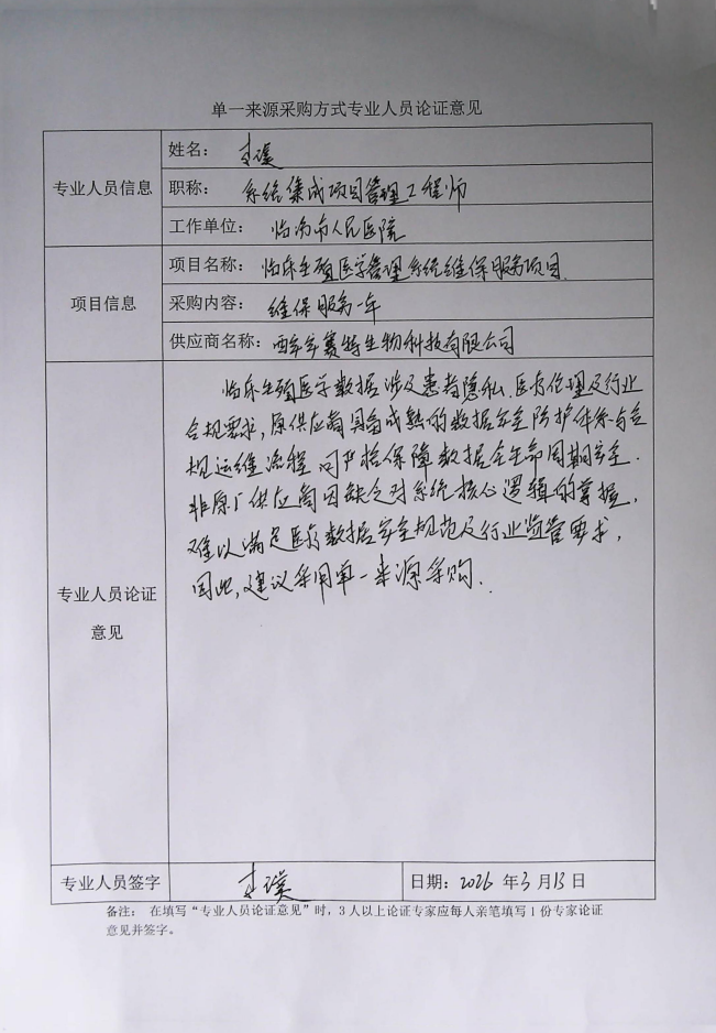 4、采用单一来源采购方式的原因及说明:医院临床生殖医学管理系统数据涉及患者隐私,原维保供应商拥有该系统核心架构、源代码等使用权,具备成熟的数据安全防护体系与合规运维流程,能够提供维保技术兼容性及专业性。为保证系统稳定、数据安全及后续服务的连续性,实施单一来源采购。