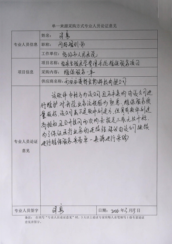临汾市人民医院拟对临床生殖医学管理系统维保服务项目进行单一来源采购,现就有关事项公示如下:
