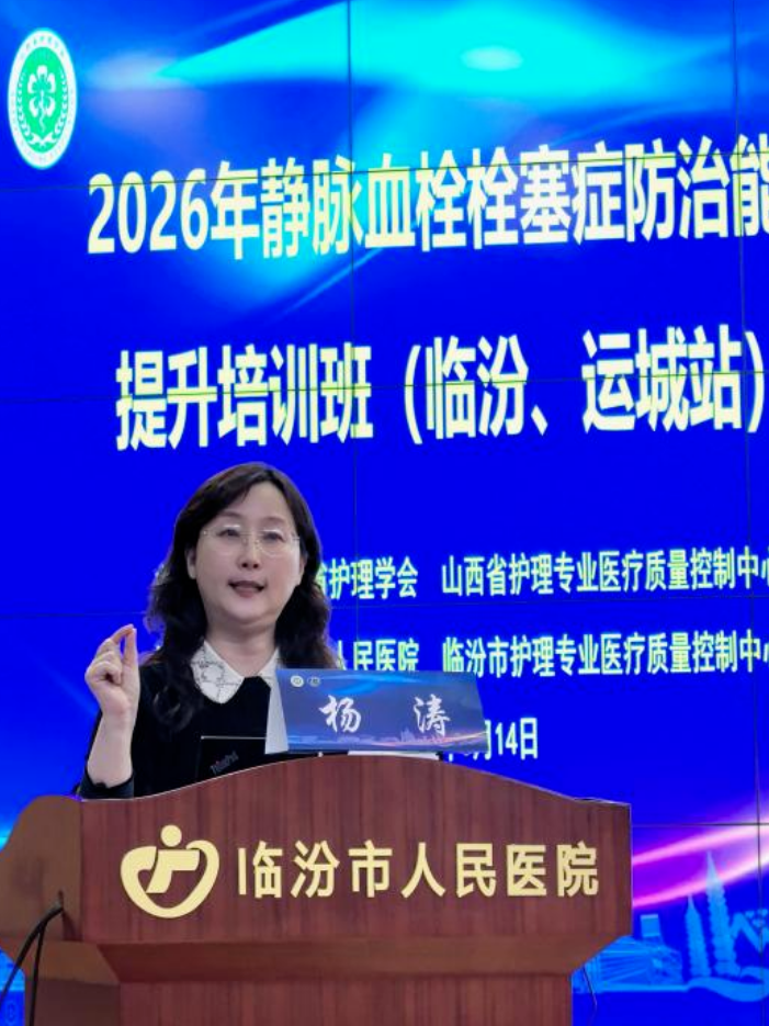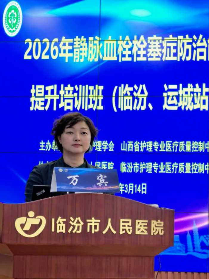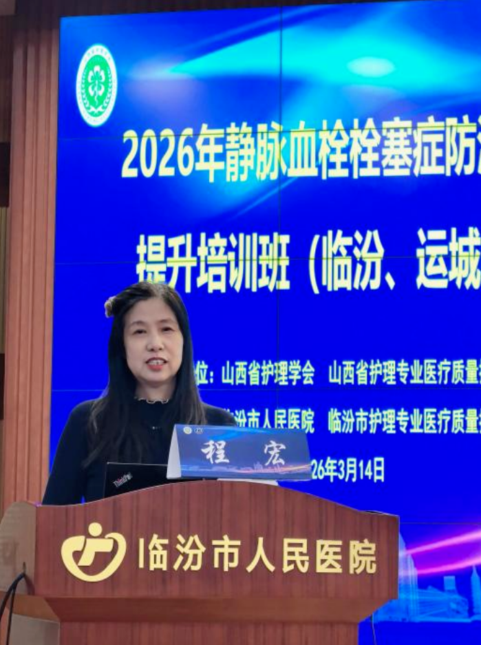 3月14日,由山西省护理学会、山西省护理专业医疗质量控制中心联合主办,临汾市人民医院、临汾市护理专业医疗质量控制中心协办的“2026年静脉血栓栓塞症防治能力提升培训班”在行政楼大报告厅举办。来自临汾、运城二级以上医疗机构的护理管理人员及骨干共计500余人培训。