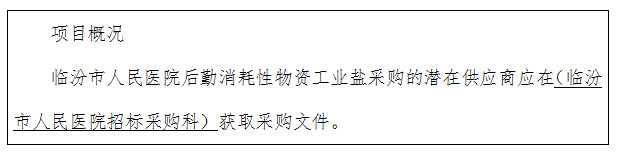 项目名称:临汾市人民医院后勤消耗性物资工业盐采购项目