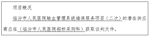 项目名称:临汾市人民医院输血管理系统维保服务项目(二次)
