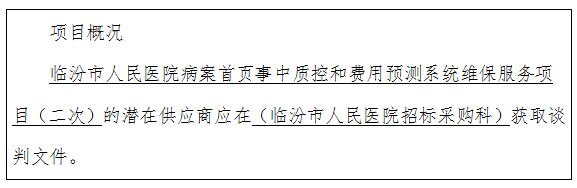 项目名称:临汾市人民医院病案首页事中质控和费用预测系统维保服务项目(二次)