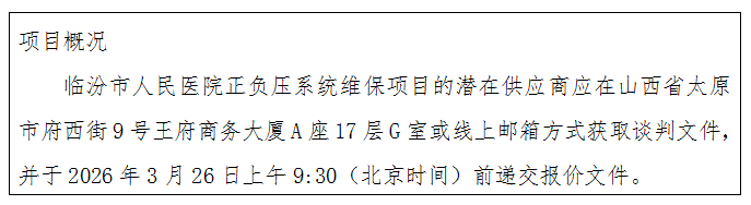 2、项目名称:临汾市人民医院正负压系统维保项目