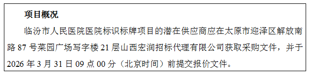 2.项目名称:临汾市人民医院医院标识标牌项目