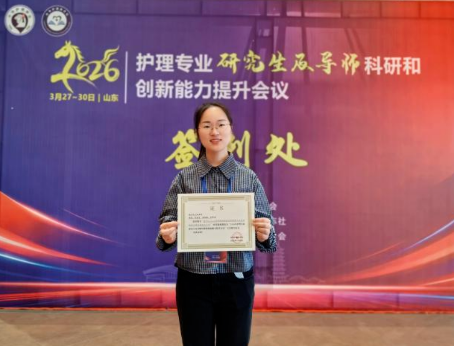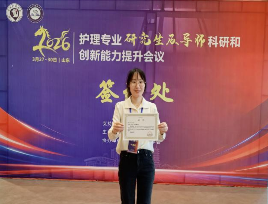 近日,我院护理科研团队参加由中华护理杂志社主办、中华护理学会支持的“2026年护理专业研究生及导师科研和创新能力提升会议”。本次会议汇聚全国护理科研骨干,聚焦学科前沿与科研创新,搭建了高质量学术交流平台。大会设置“硕、博士高质量论文专场”,为护理学术成果提供了专业的交流与研讨渠道。我院护理团队的3项研究成果在会议中脱颖而出,2项进行大会发言、1项进行壁报交流,充分展现了我院护理科研的创新活力,得到与会学者的关注与认可。