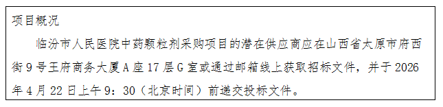 2、项目名称:临汾市人民医院中药颗粒剂采购项目