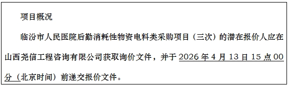 项目名称:临汾市人民医院后勤消耗性物资电料类采购项目(三次)