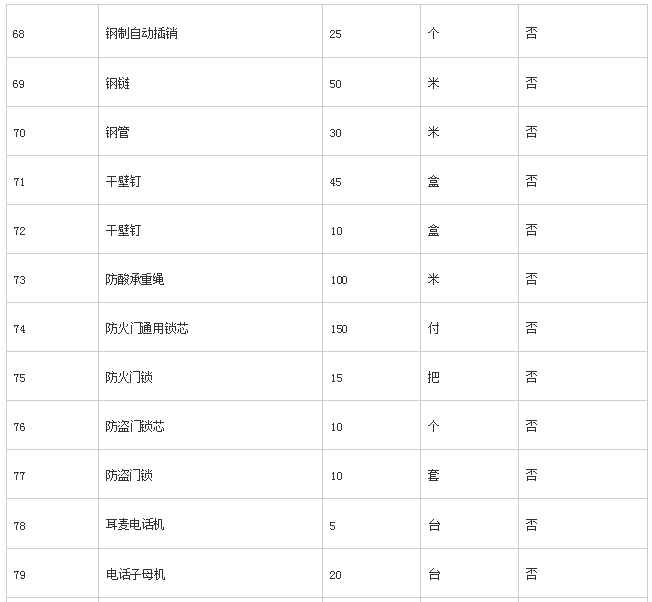二、项目名称:后勤消耗性物资五金类采购项目(三次)