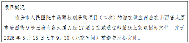 2、项目名称:临汾市人民医院中药颗粒剂采购项目(二次)