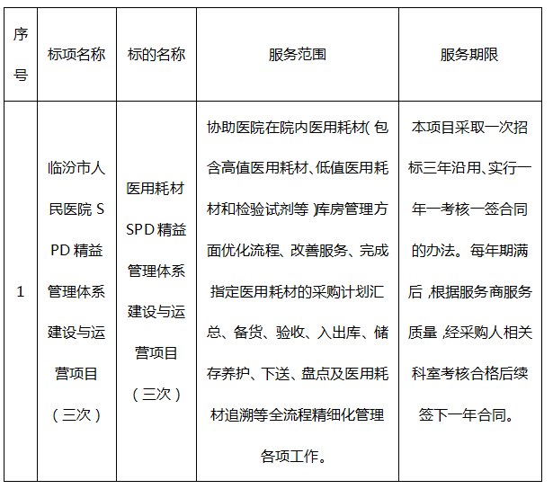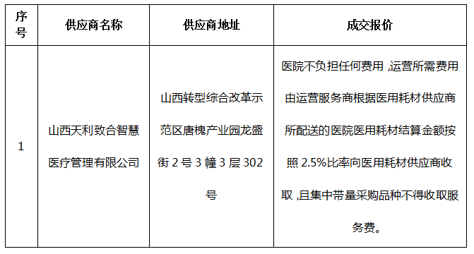 临汾市人民医院SPD精益管理体系建设与运营项目(三次)成交结果公告
