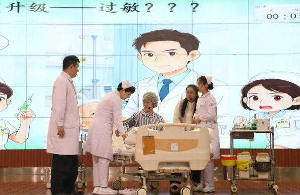 普通护理单元围绕基础护理技术展开,参赛队伍结合本科室常见病种,将沟通、安慰、隐私保护等服务细节自然融入操作流程。肝胆胰科护理组带来的《绿光保卫战——当“毒药”疑云遇上“魔法”护理》,以巧妙的情节设计和细腻的情感表达,赢得评委与观众一致好评,获得普通单元决赛一等奖。